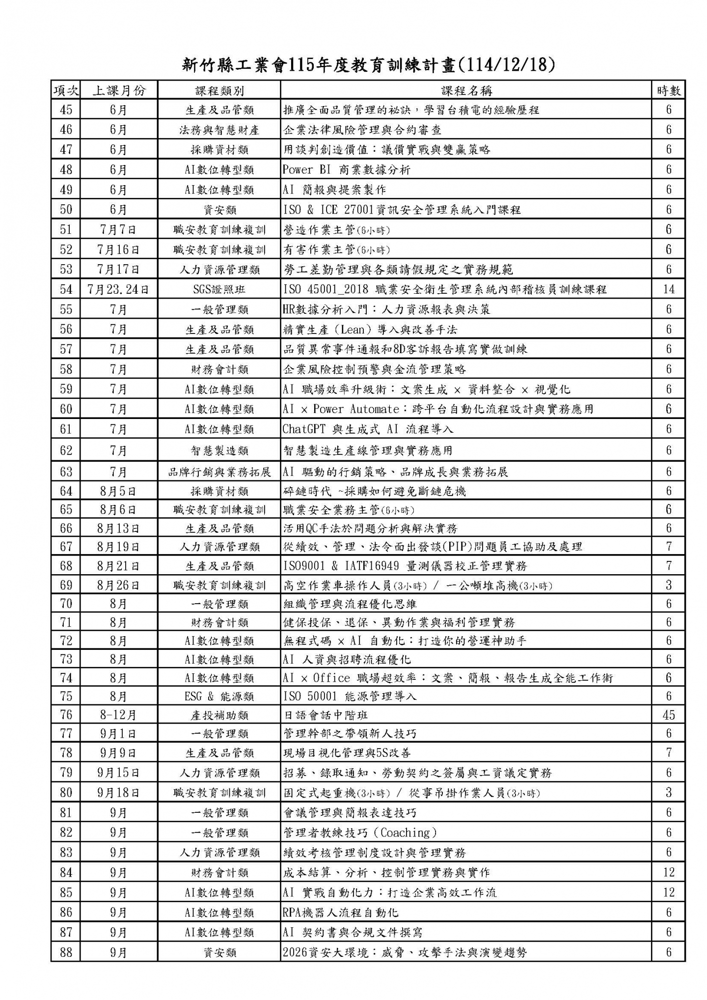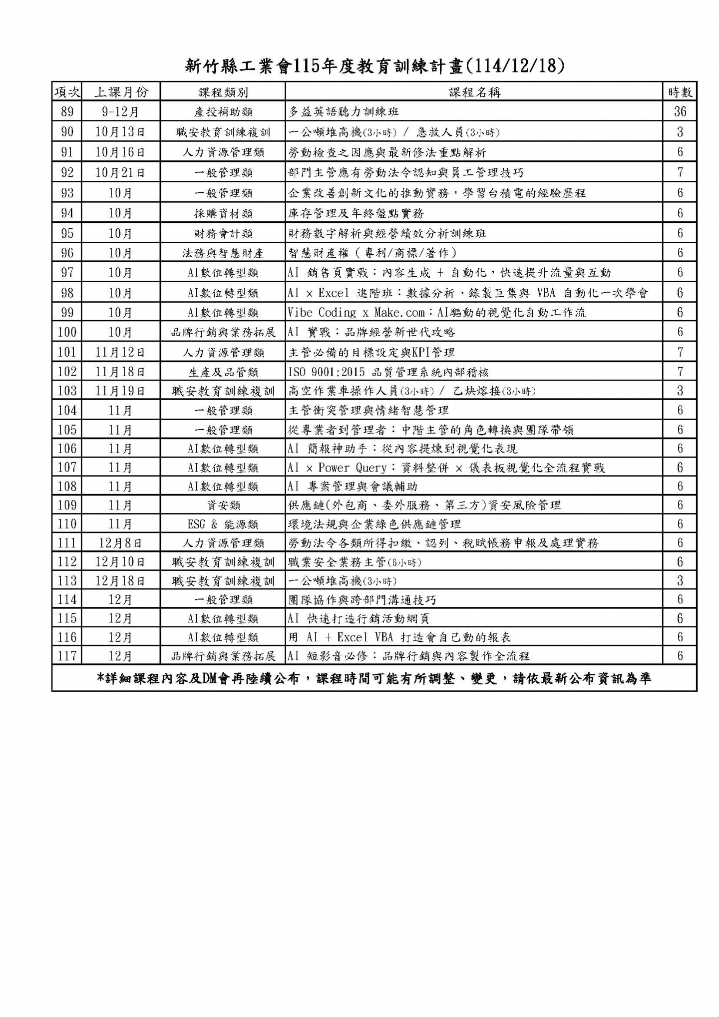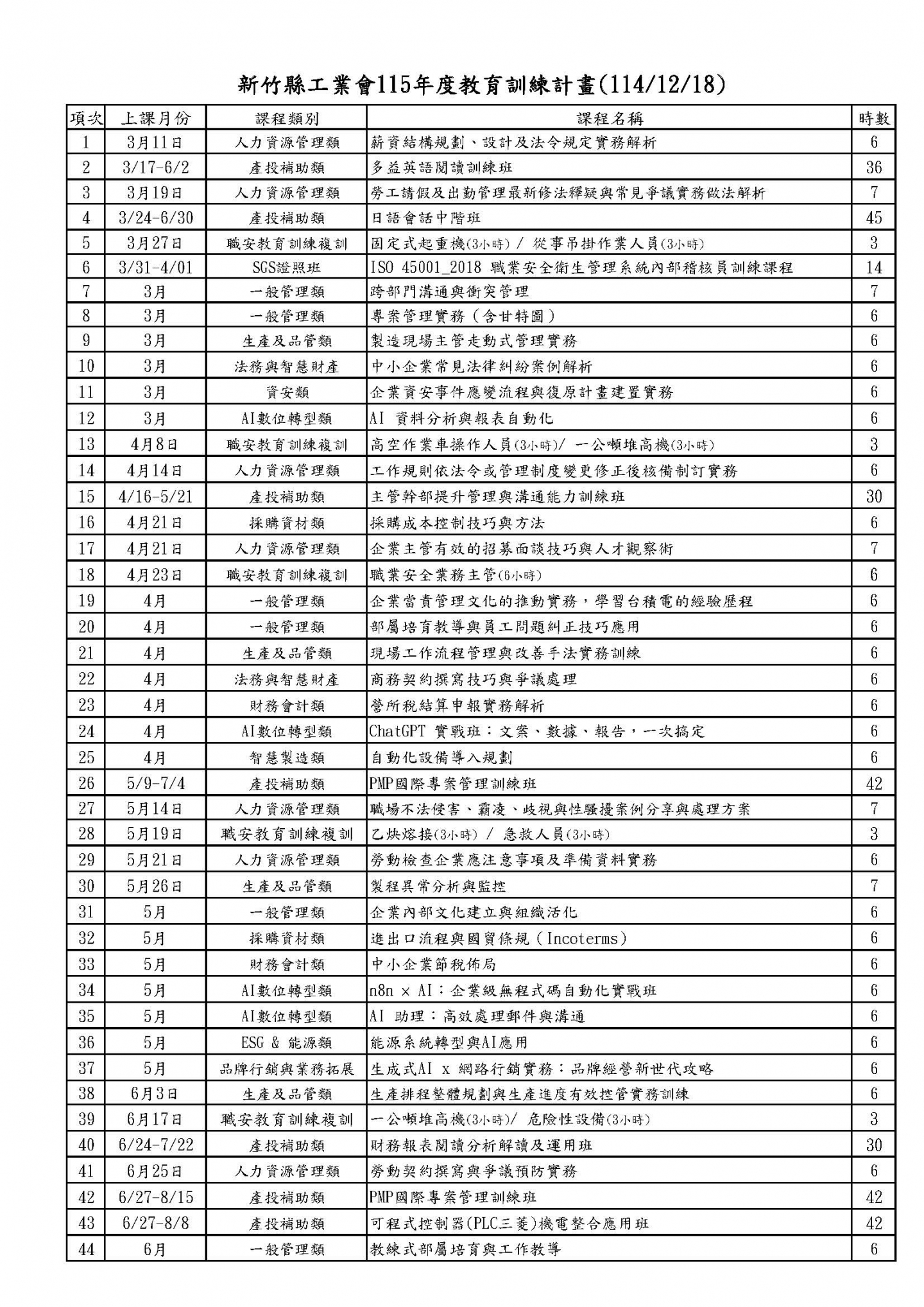 新竹縣工業會 115年度教育訓練開課計畫 (114/12/18)