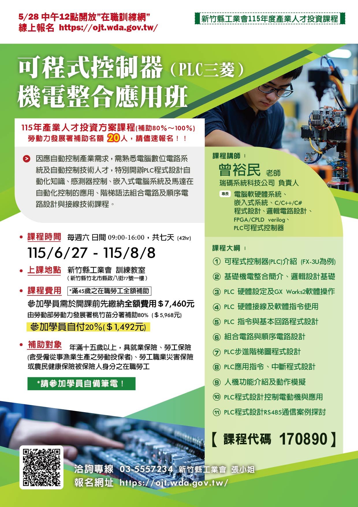 【補助80%-100%】115/6/27-8/8 可程式控制器(PLC三菱)機電整合應用班-第3期