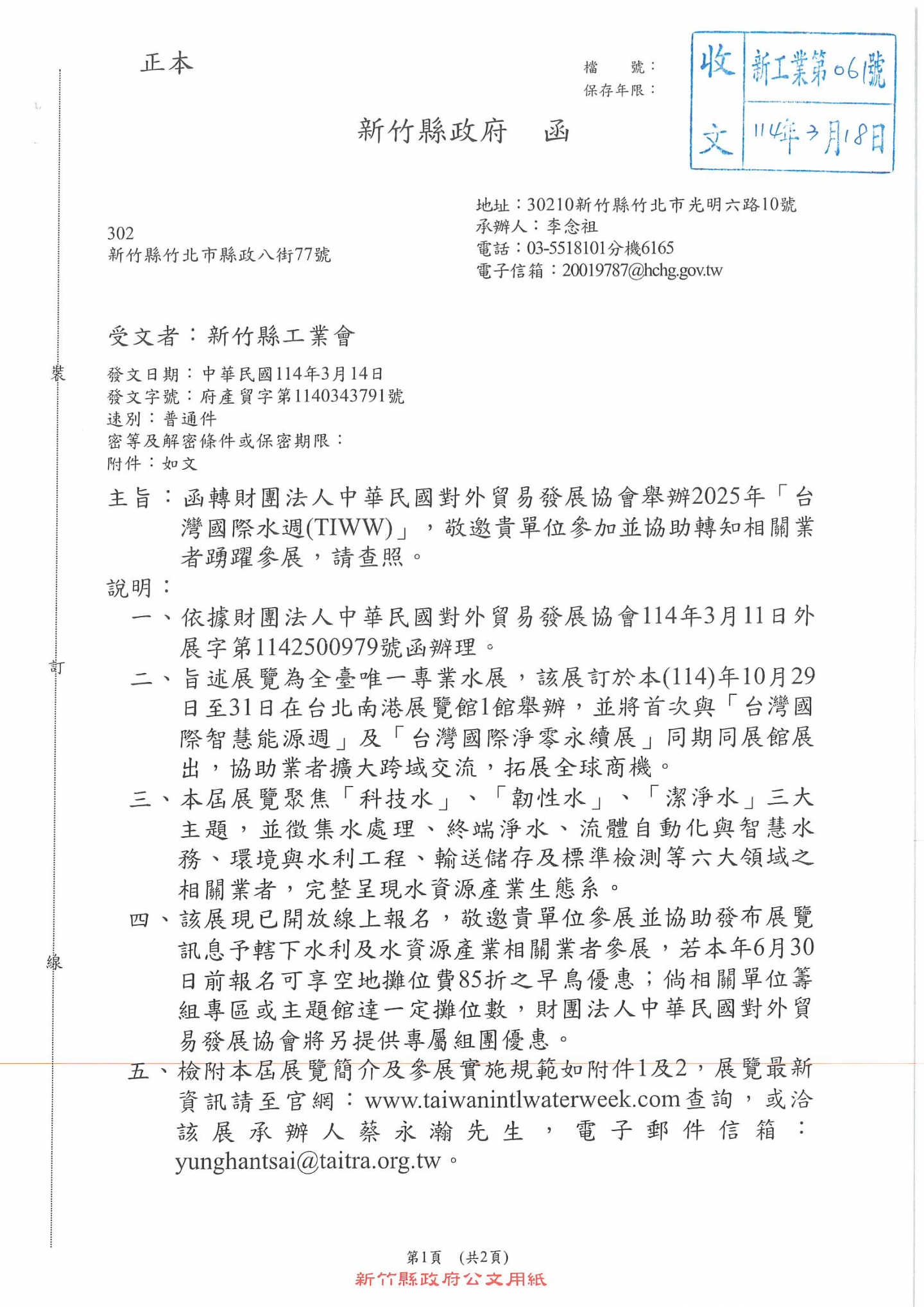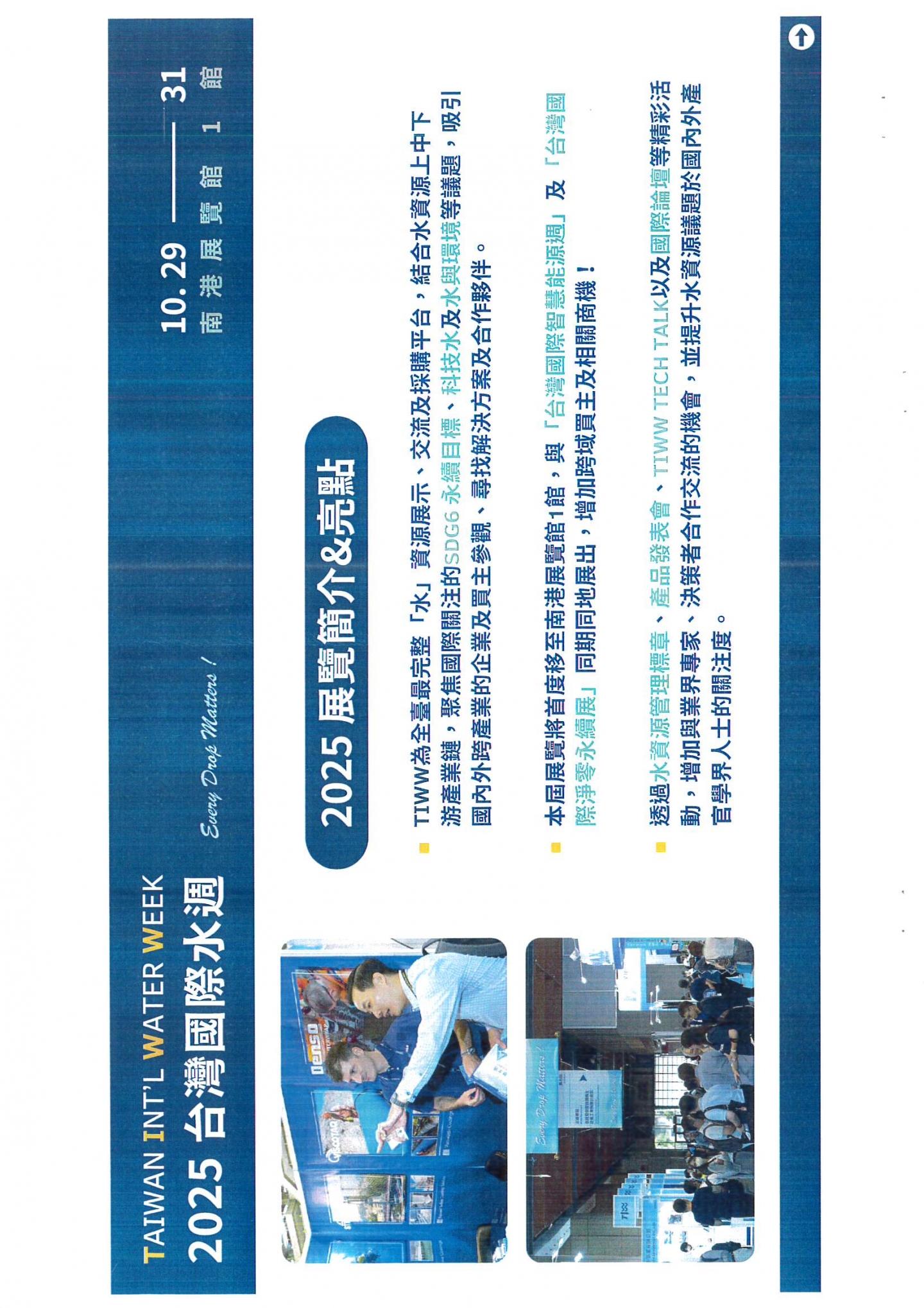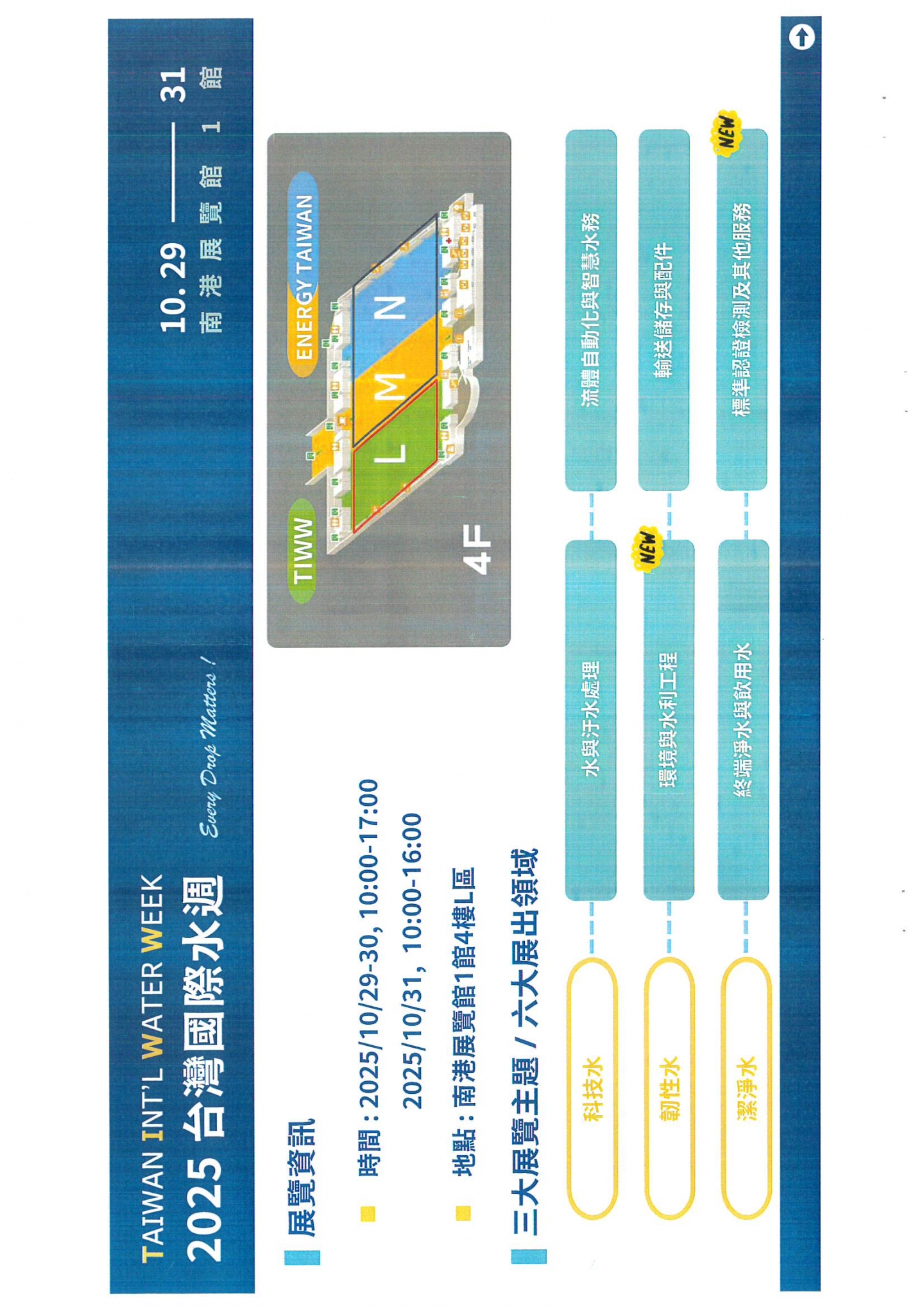 財團法人中華民國對外貿易發展協會舉辦 2025年「台灣國際水週(TIWW)」邀請企業工廠參與(更多資訊可洽新竹縣工業會)