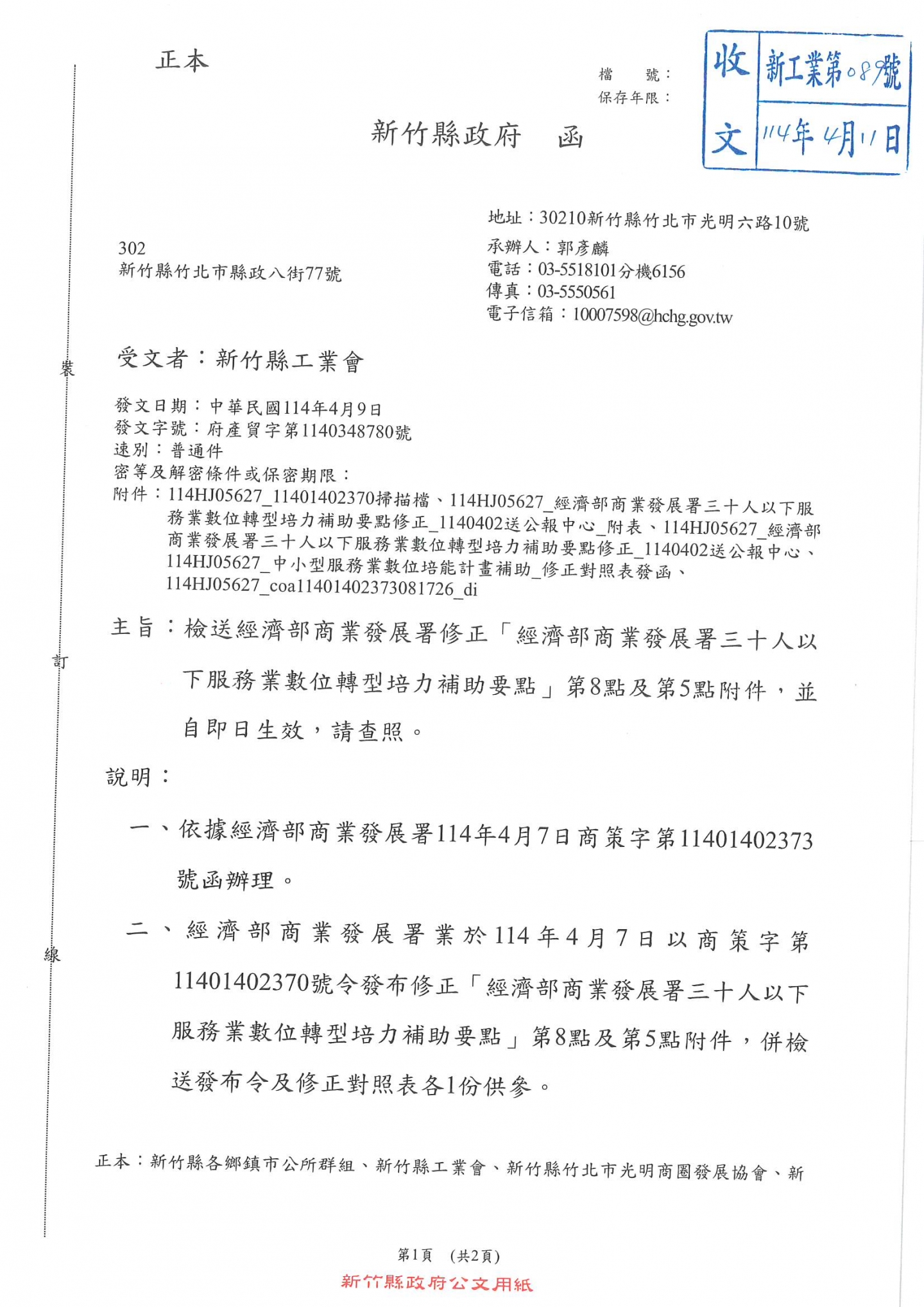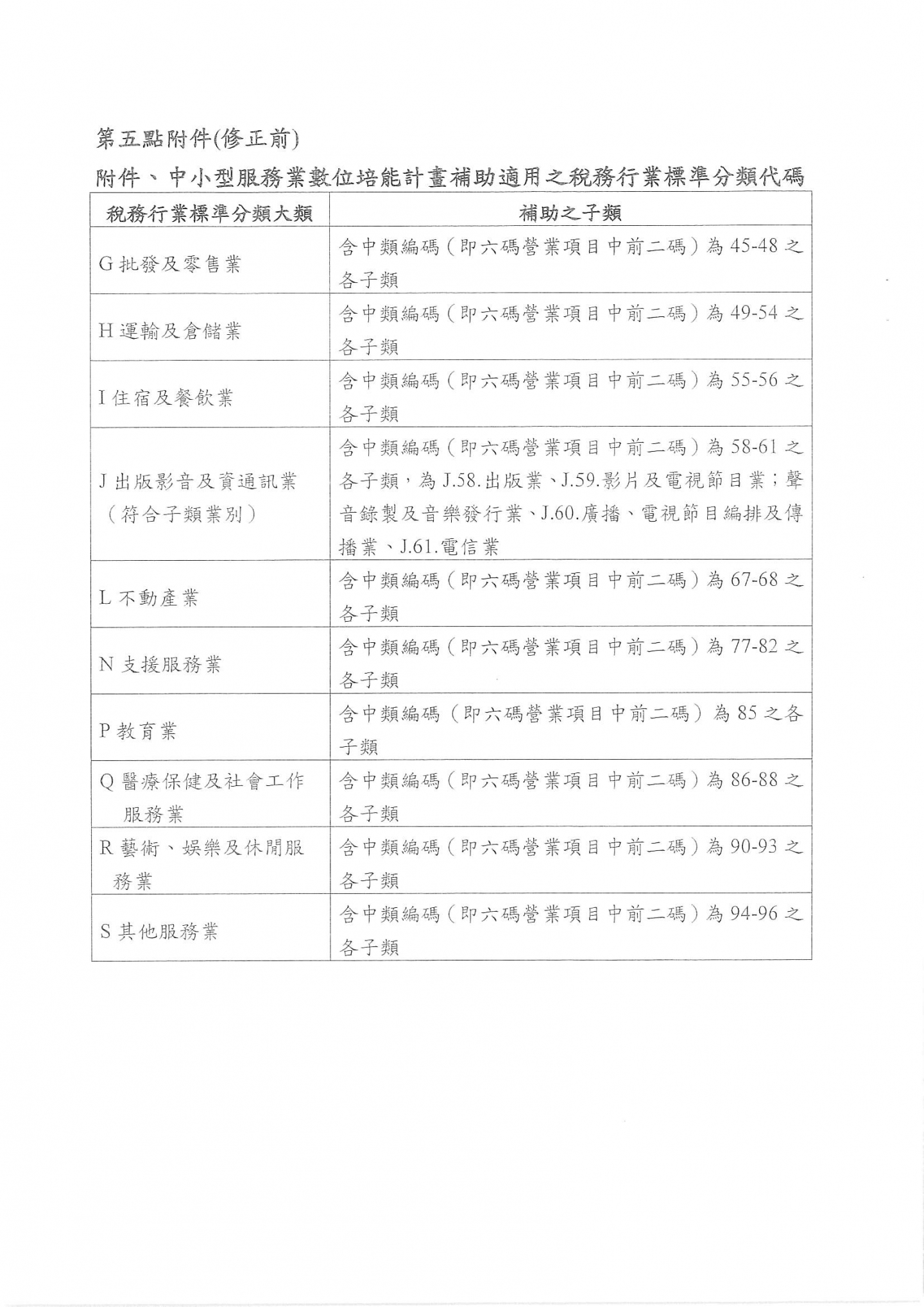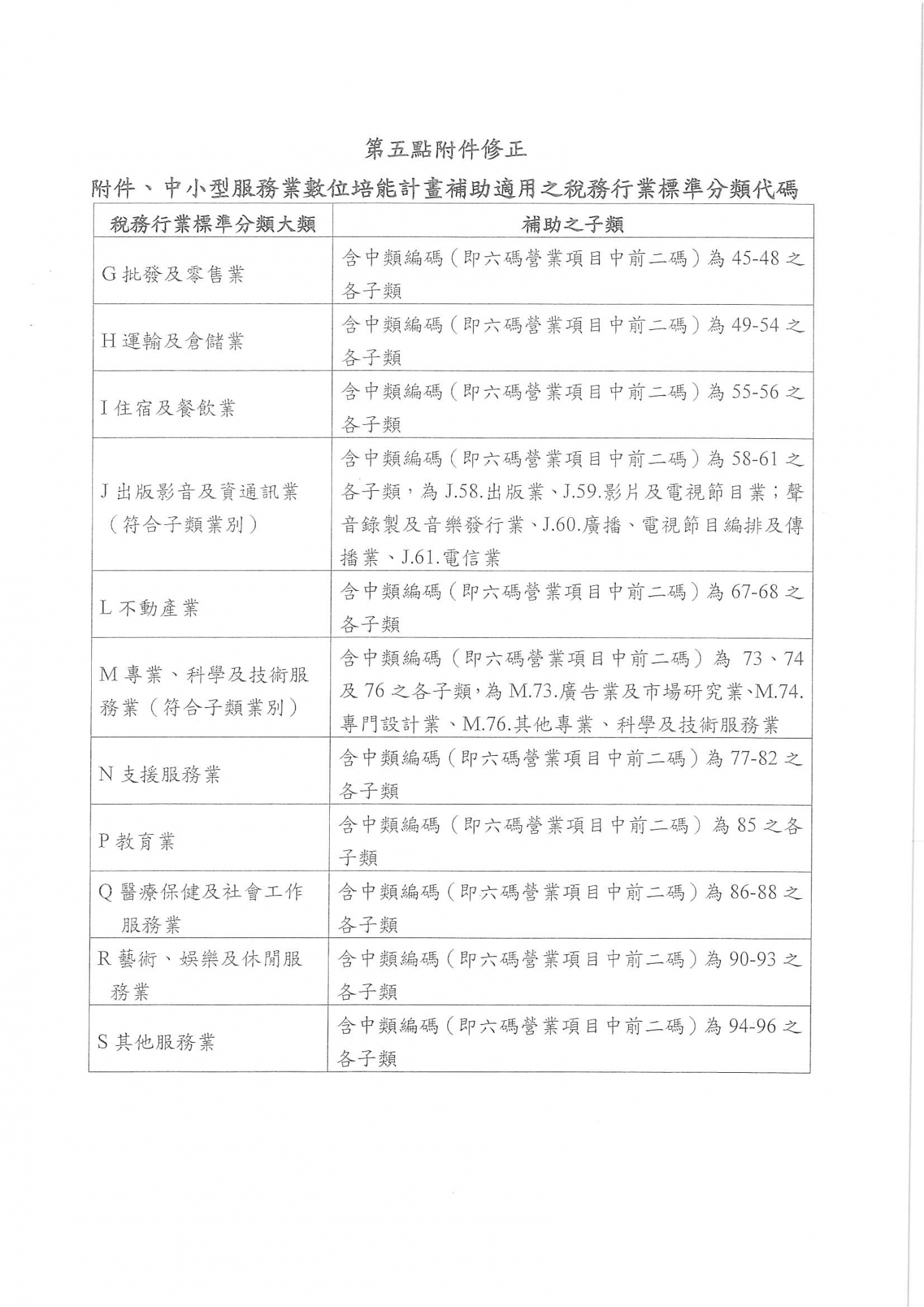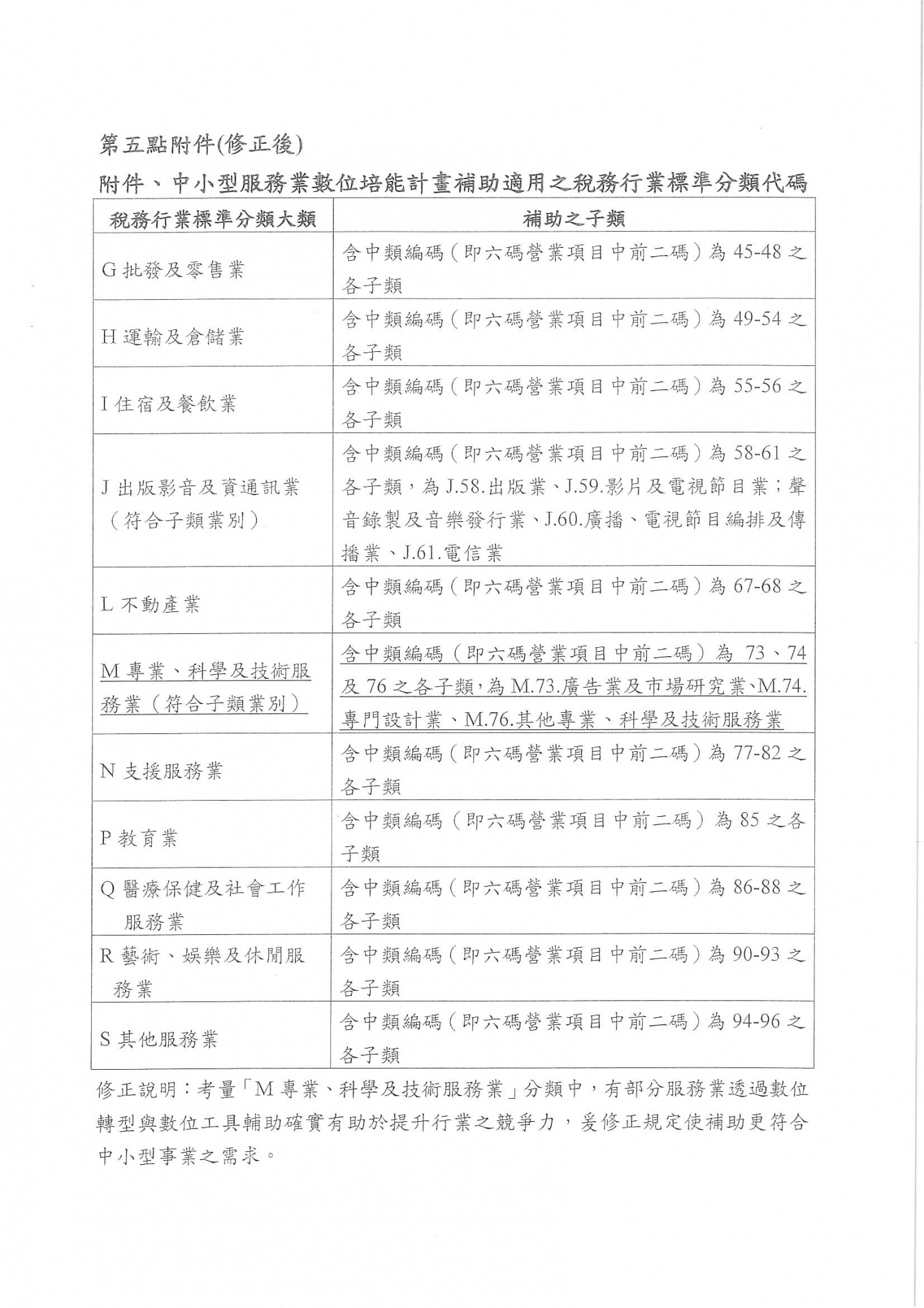 經濟部商業發展署修正「經濟部商業發展署三十人以下服務業數位轉型培力補助要點」第8項及第5點附件,並自即日生效