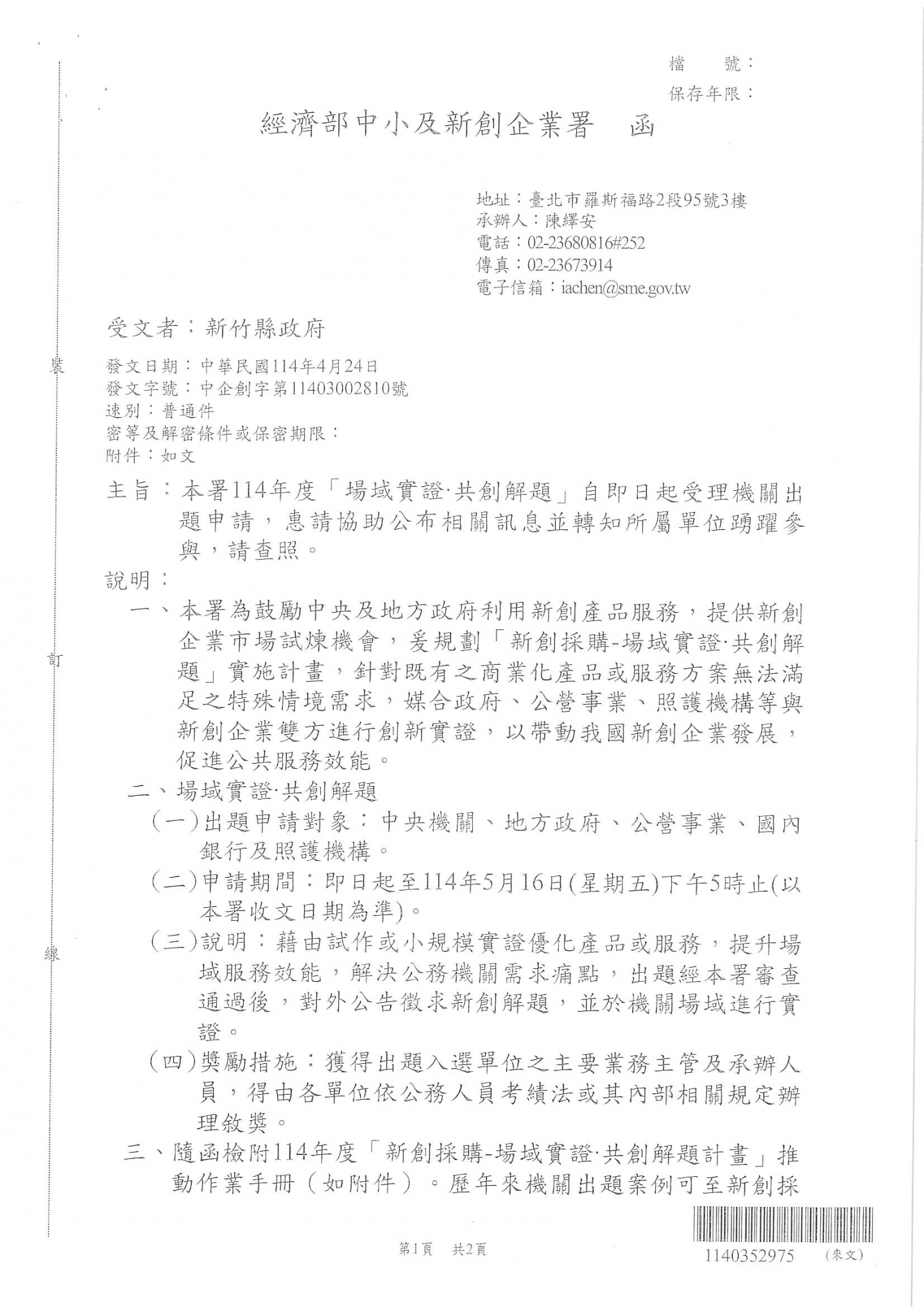 經濟部中小及新創企業署114年度「場域實證.共創解題」計畫,開放申請囉,歡迎相關企業廠商踴躍參與