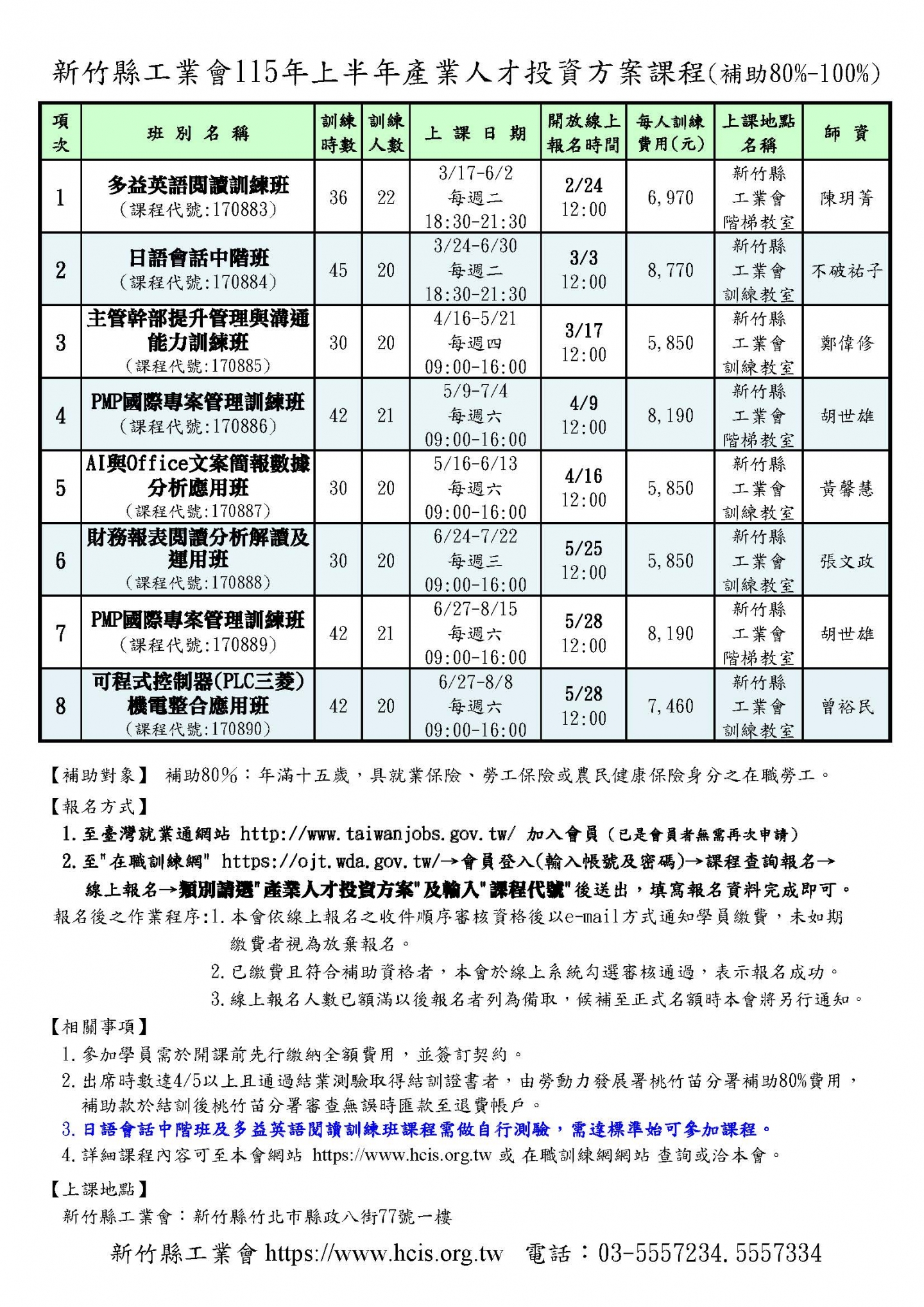 【補助80%-100%】115年上半年產業人才投資方案補助課程~共8項課程