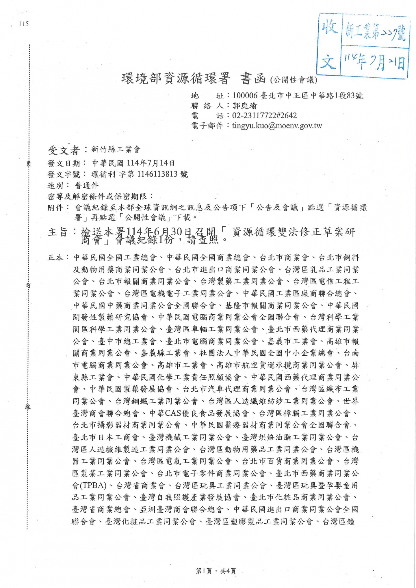 114年6月30日召開「資源循環雙修法修正草案研商會」會議記錄