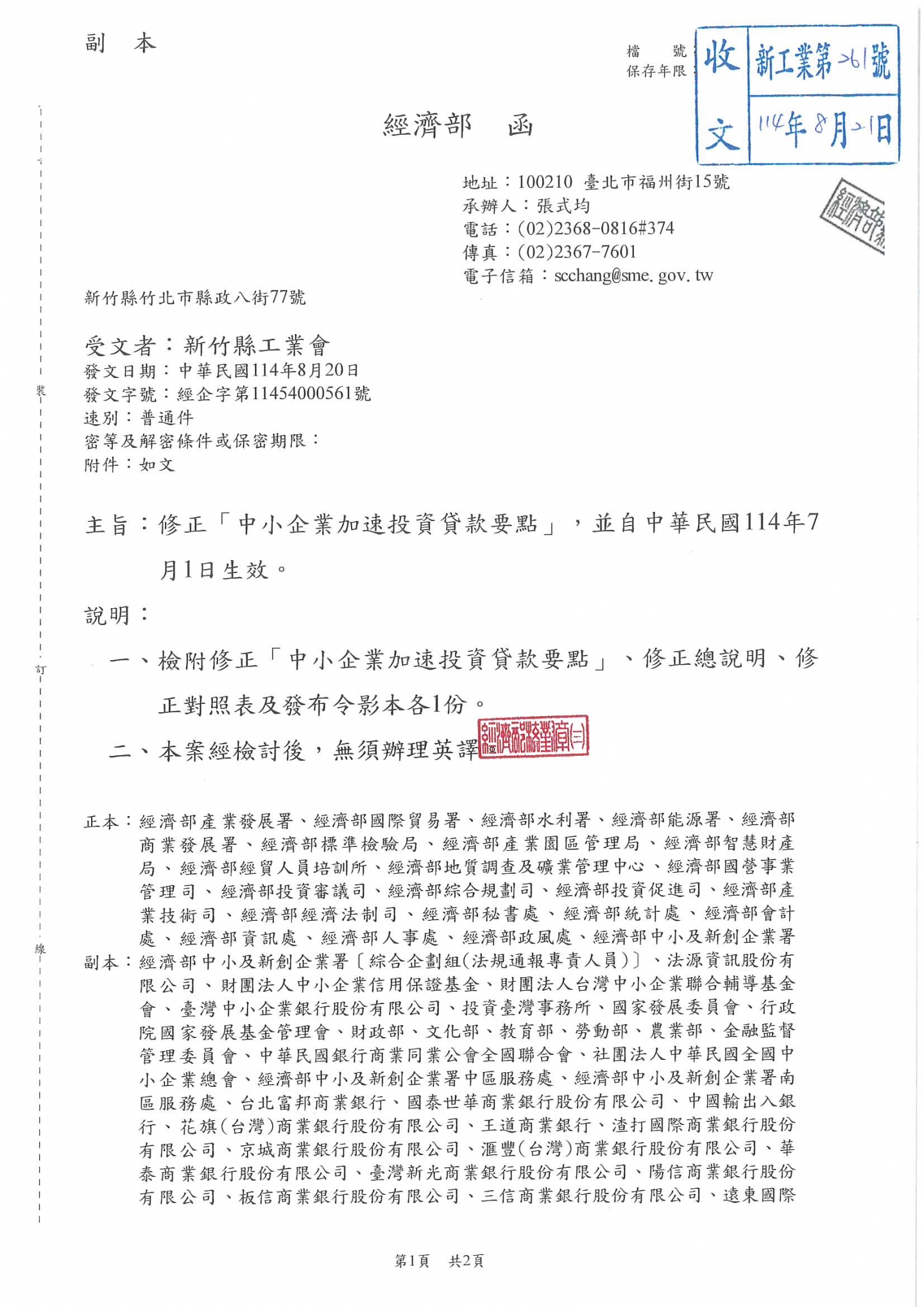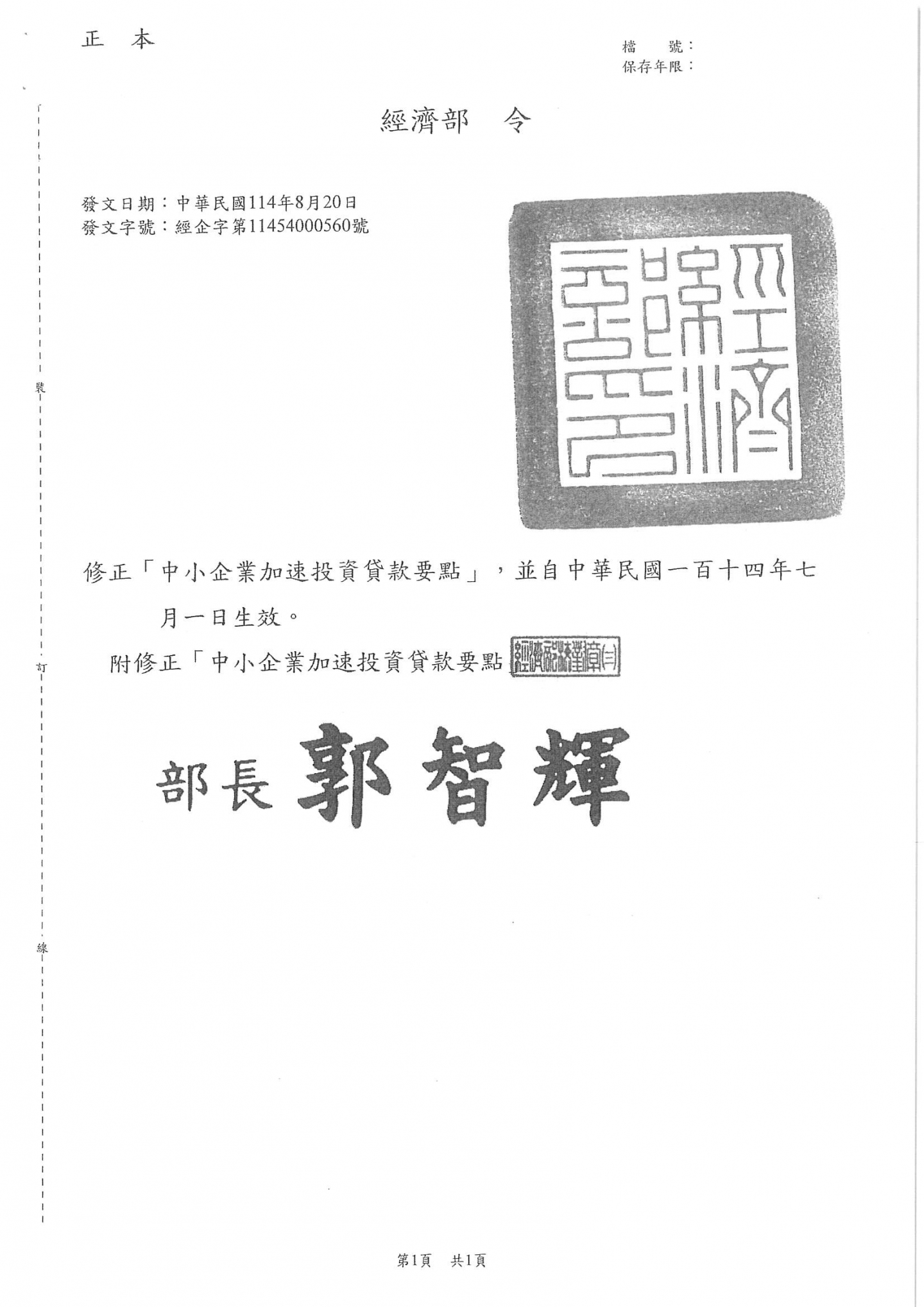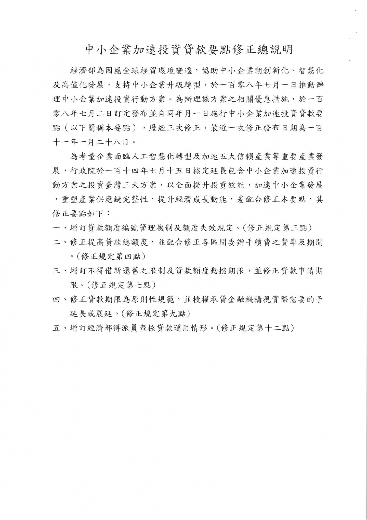 經濟部修正「中小企業加速投資貸款要點」自中華民國114年7月1日生效,請相關企業單位多加留意