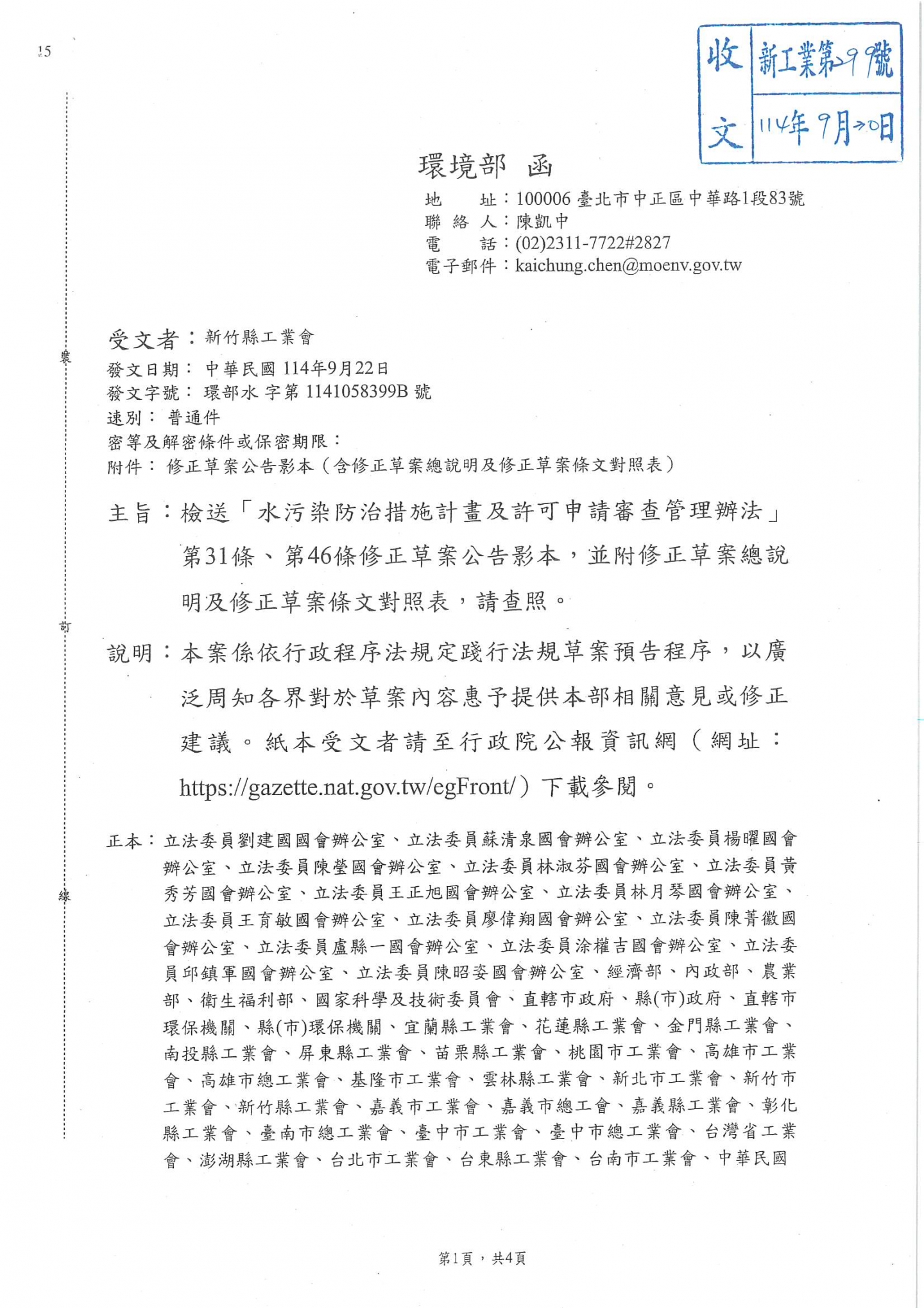 環境部公告「水污染防治措施計畫及許可申請審查管理辦法」第31條、第46條修正草案公告,敬請相關企業廠商留意