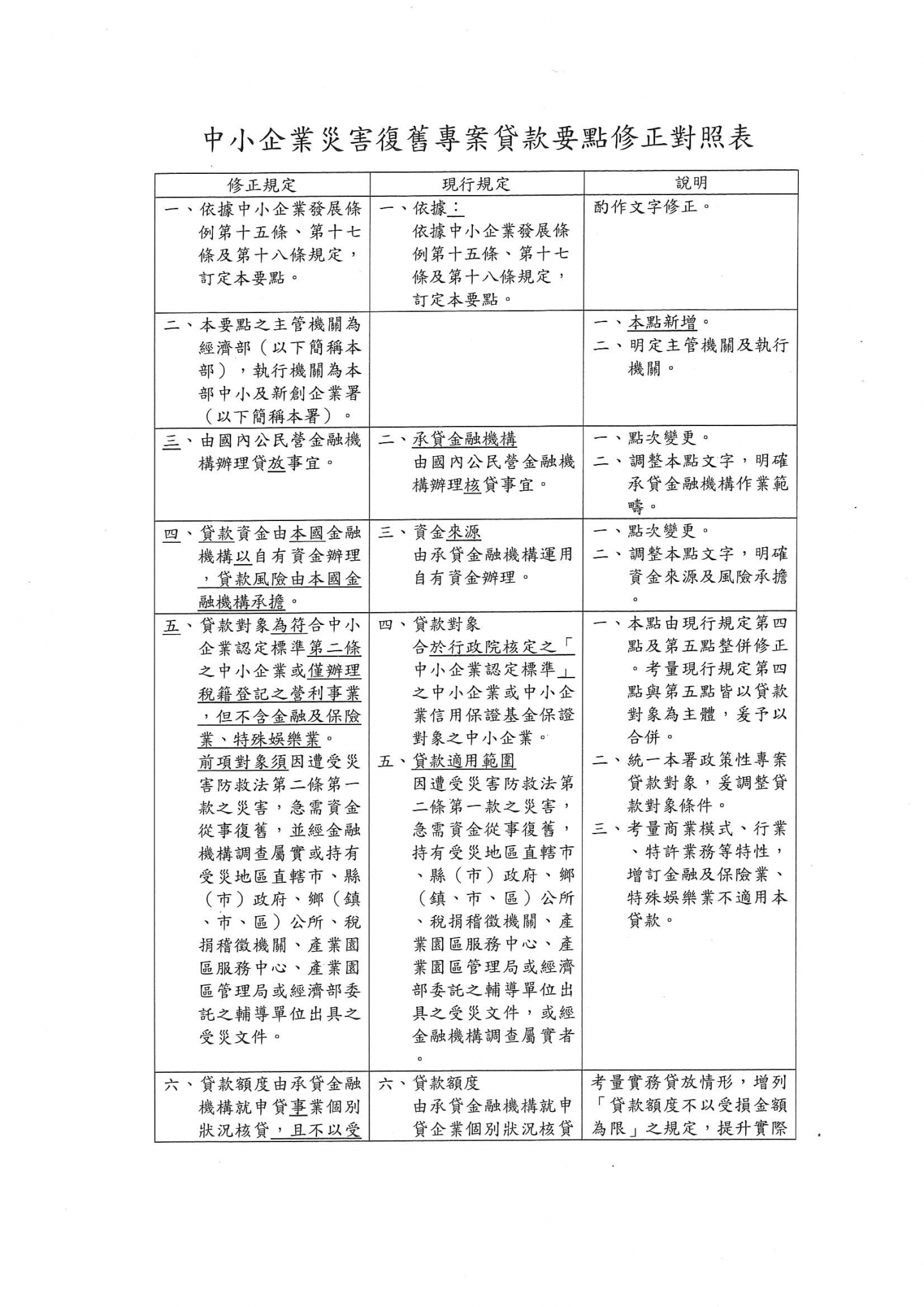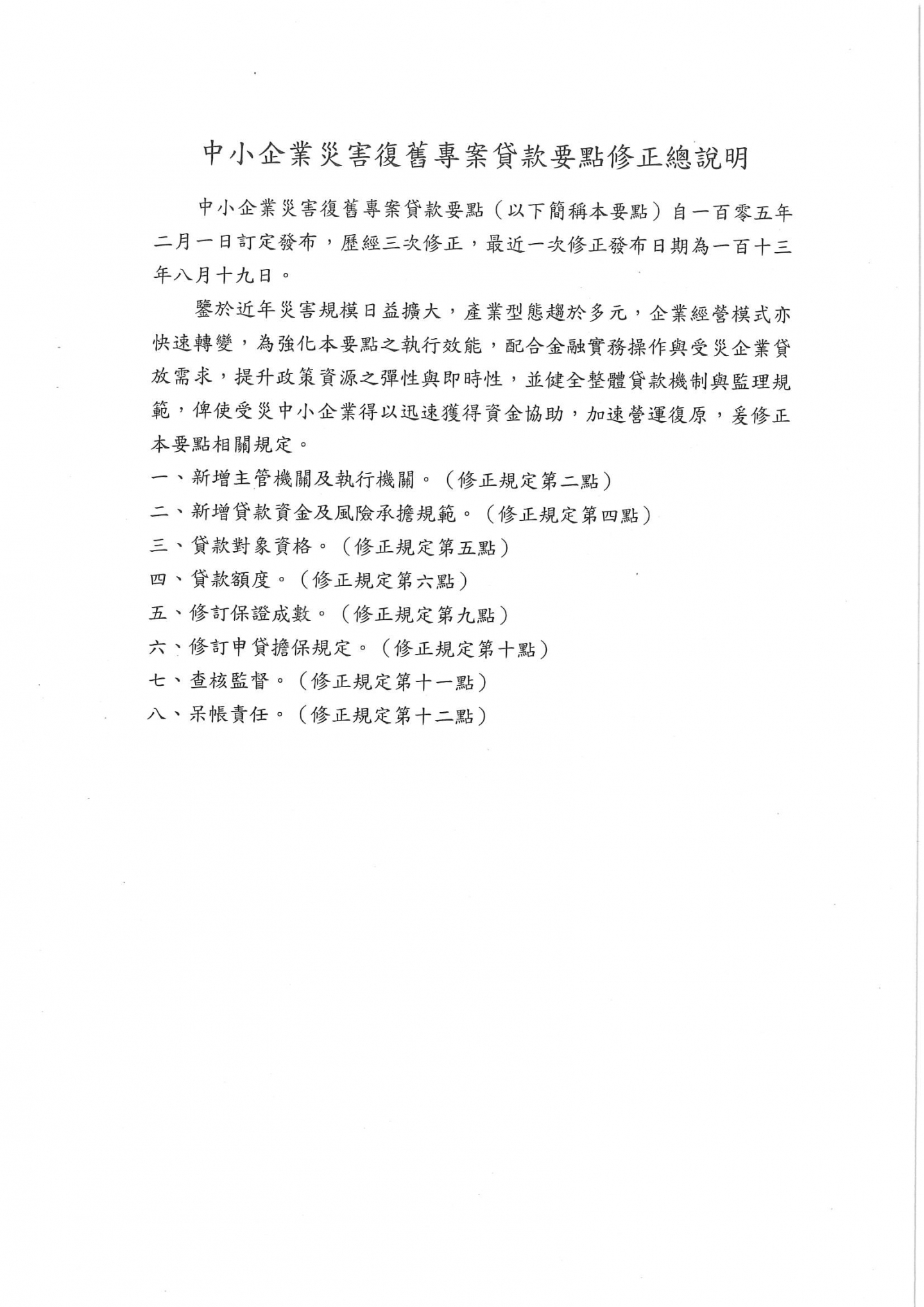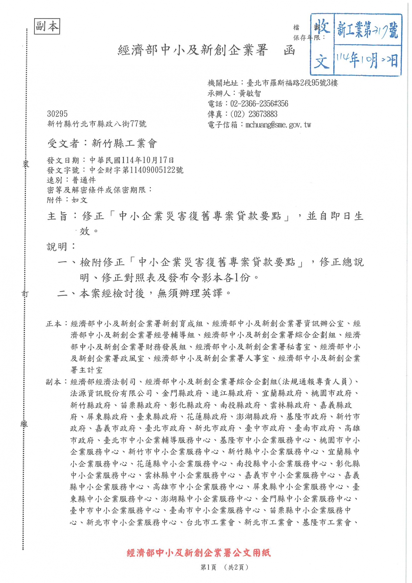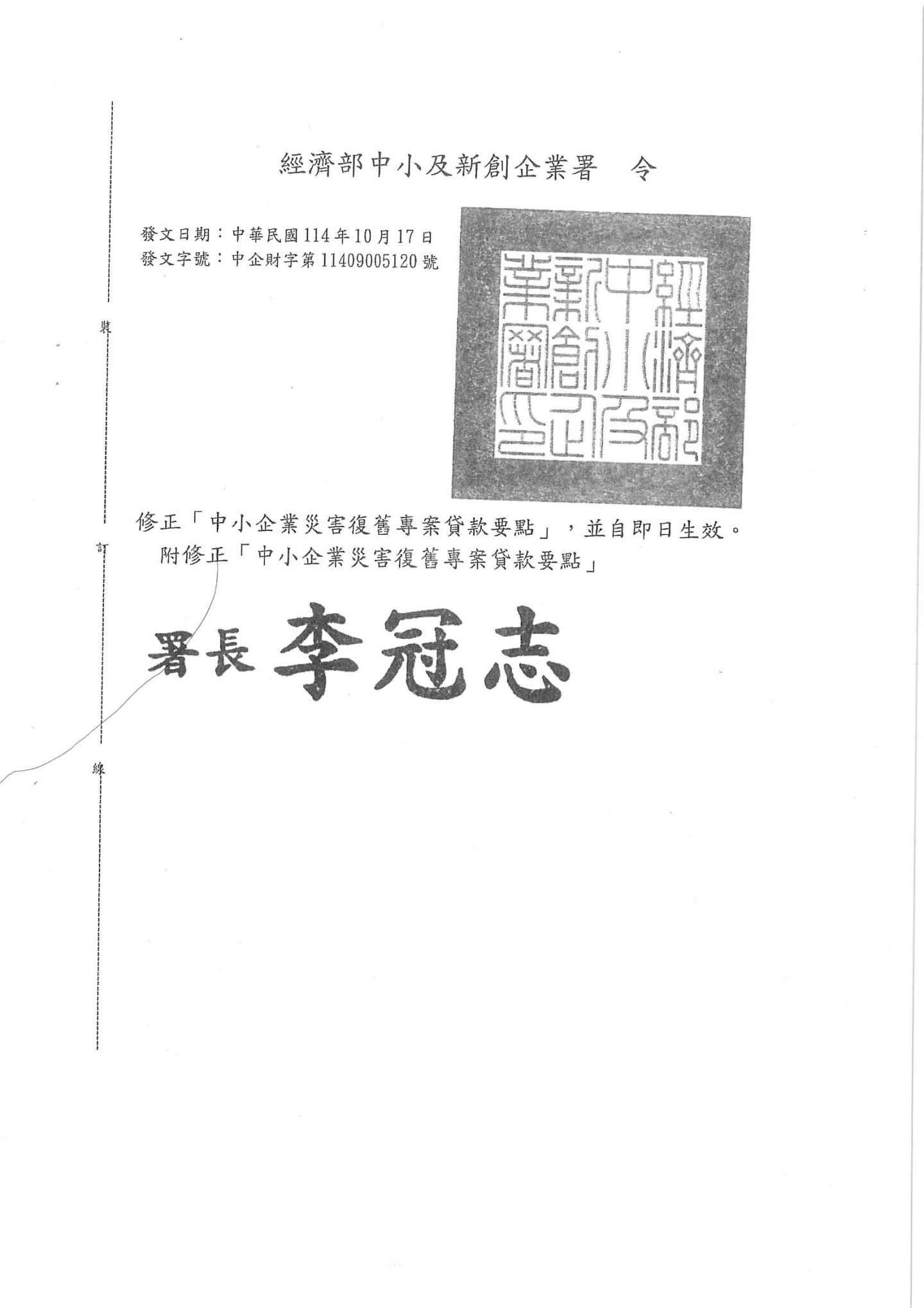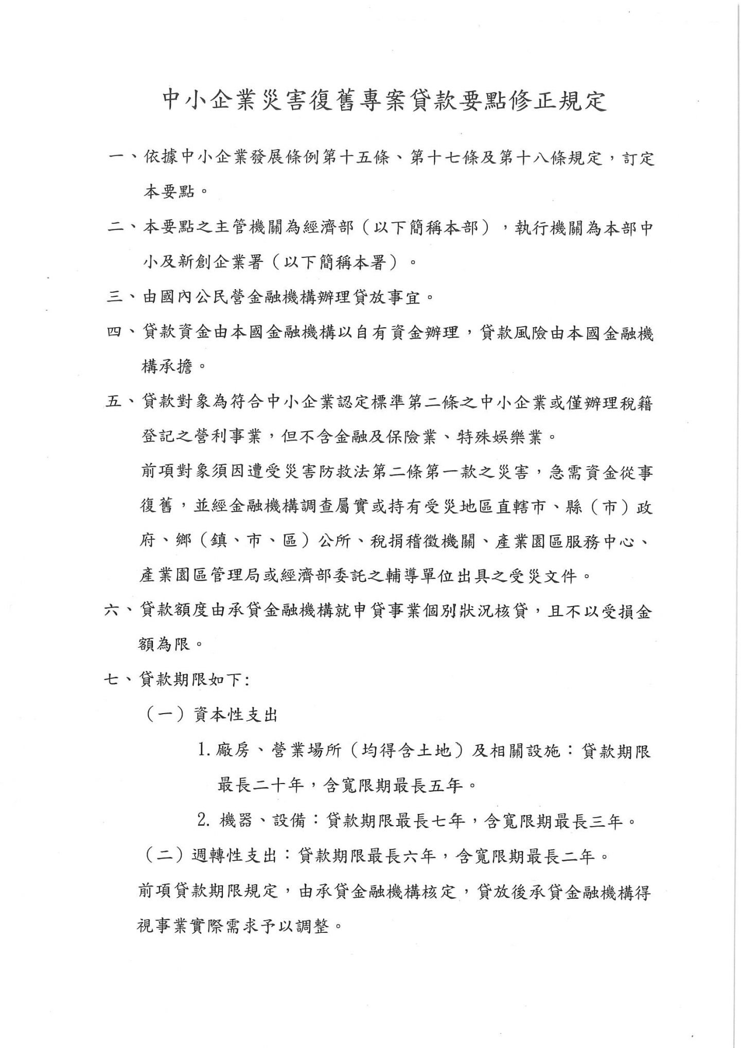 經濟部中小及新創企業署修正「中小企業災害復舊專案貸款要點」並自即日生效,有需求之企業廠商留意