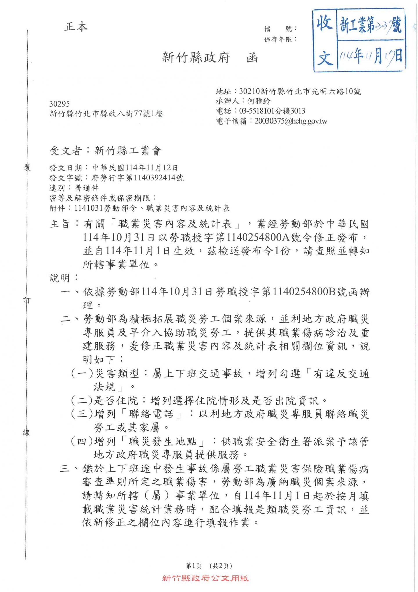 勞動部於中華民國114年10月31日以勞職授字第1140254800A號令修正發布「職業晃客内容及統計表」 並自114年11月1日生效,請相關事業單位留意