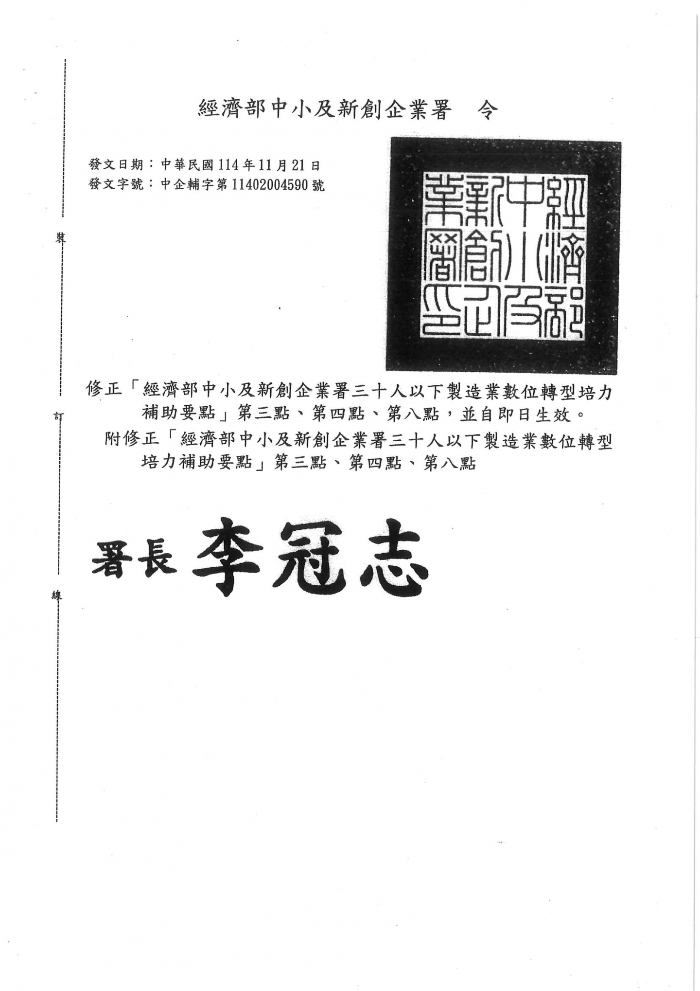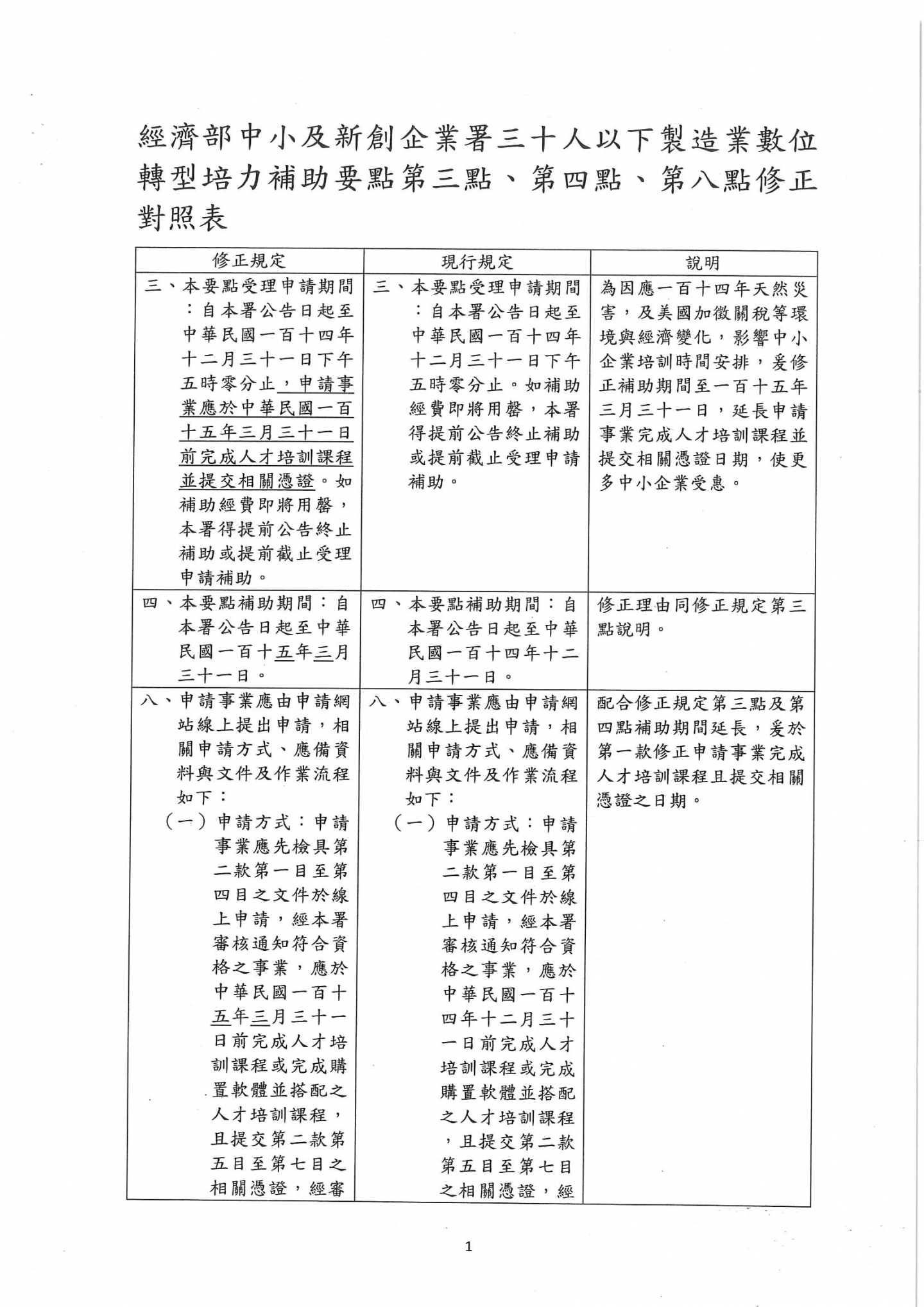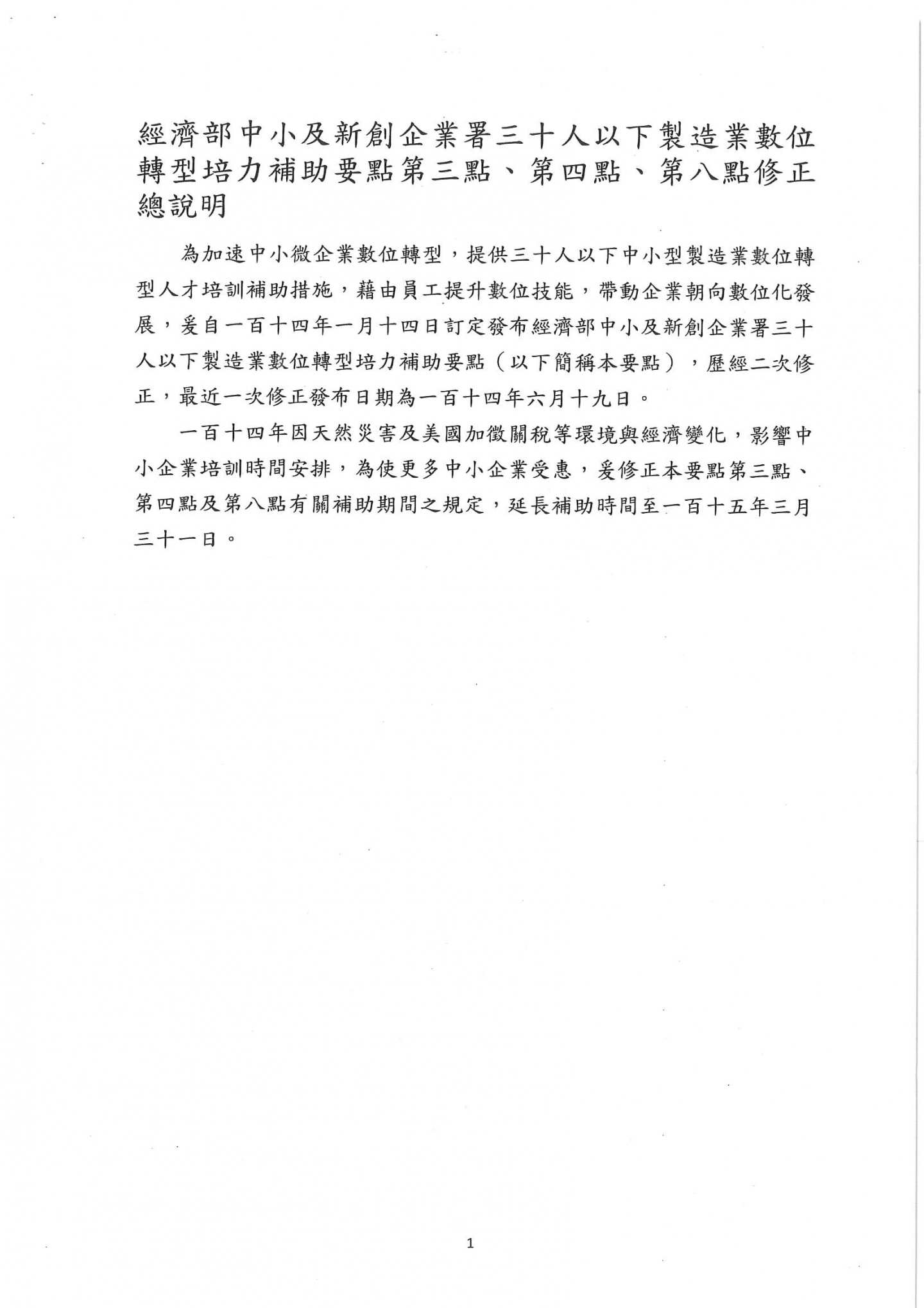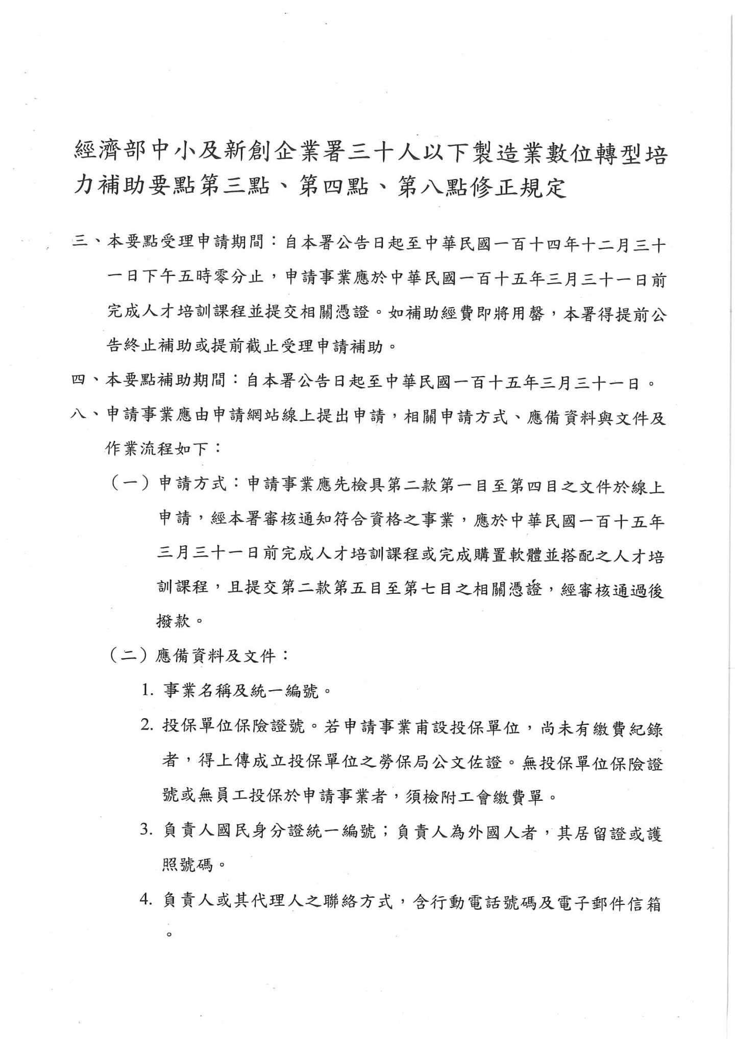 經濟部中小企業屬修正「30人以下製造業數位轉型培力補助要點」第三點、第四點、第八點,請相關事業單位留意