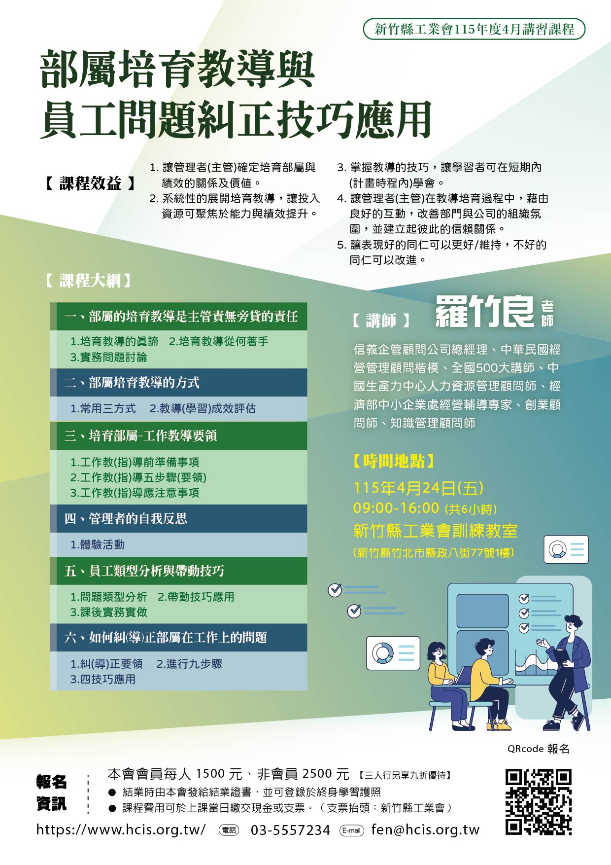 【管理相關】115.4.24 (五) 部屬培育教導與員工問題糾正技巧應用