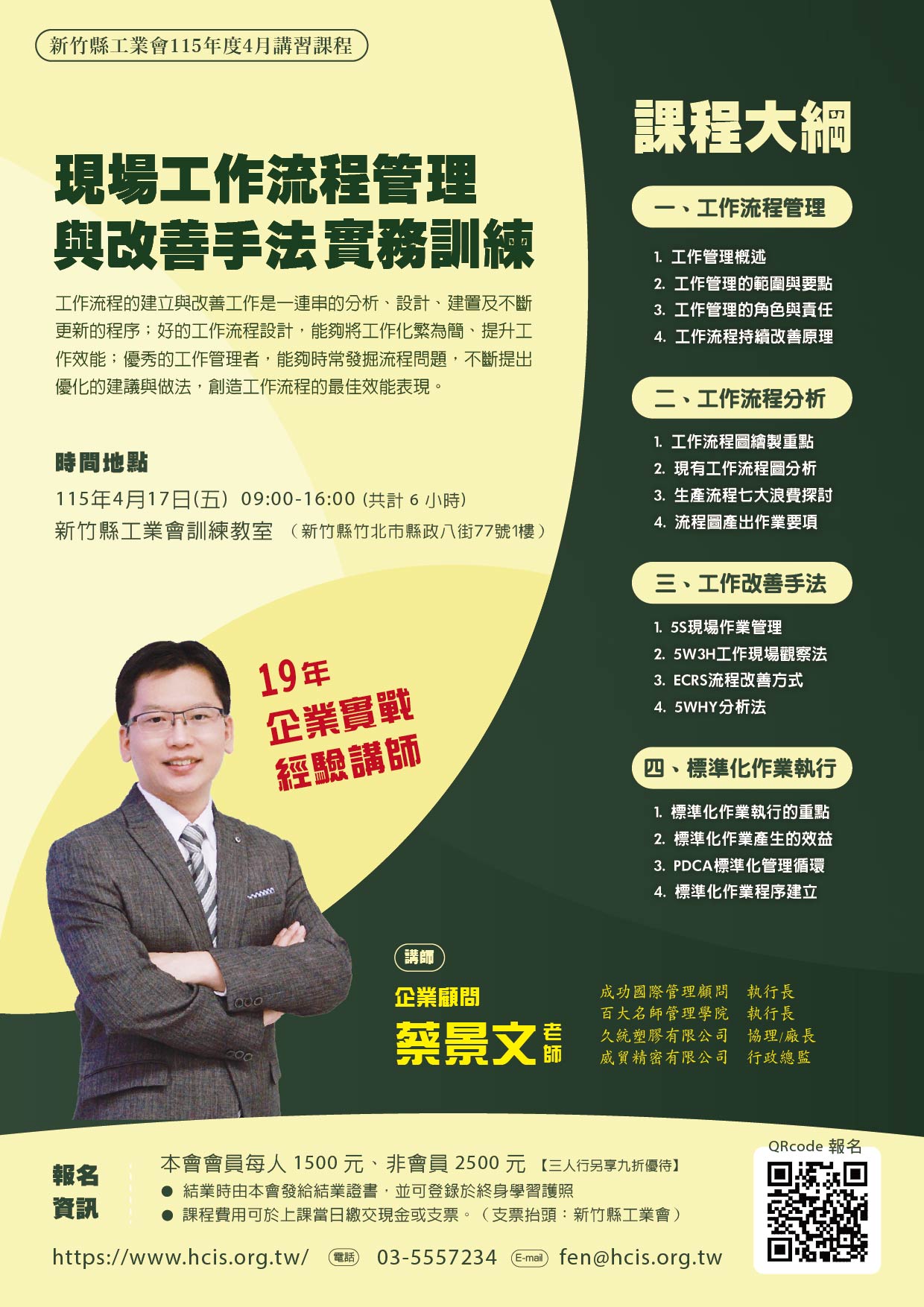 【生產品管相關】115.4.17 (五) 現場工作流程管理與改善手法實務訓練