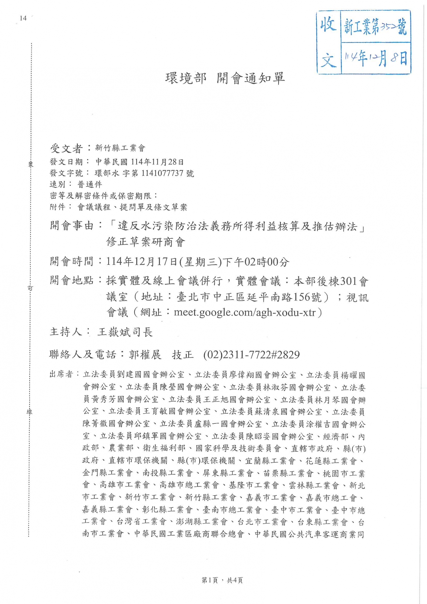 環境部召開「違反水污染防治法義務所得利益核算及推估辦法」 修正草案研商會,歡迎蒞臨參與