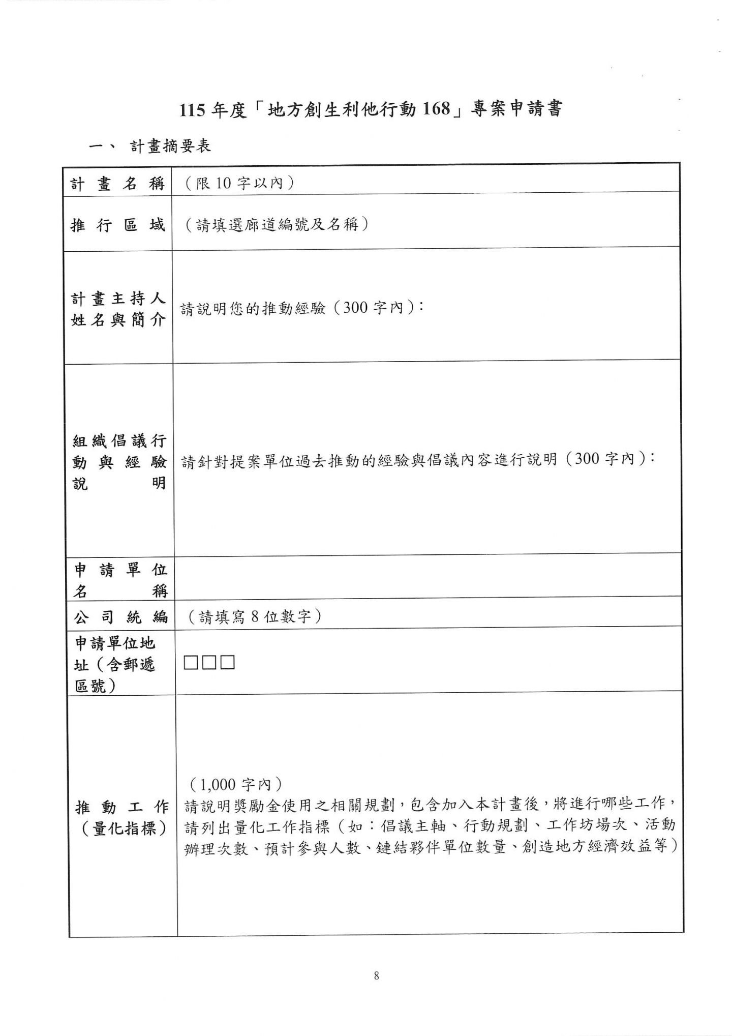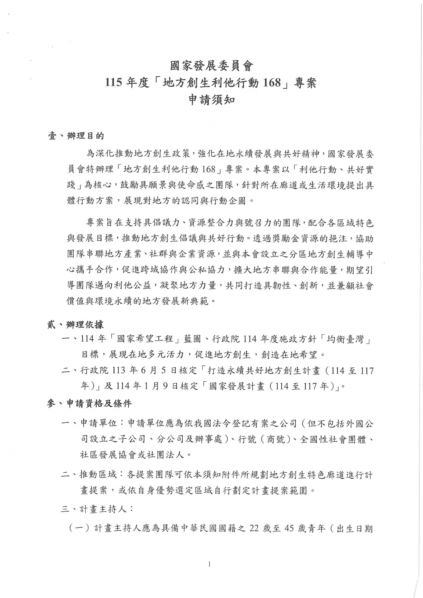 國家發展委員會公告115年度「地方創生利他行動168」專案申請,歡迎符合申請資格之單位申請
