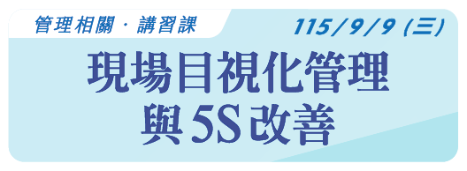 【管理相關】115.9.9(三)現場目視化管理與5S改善