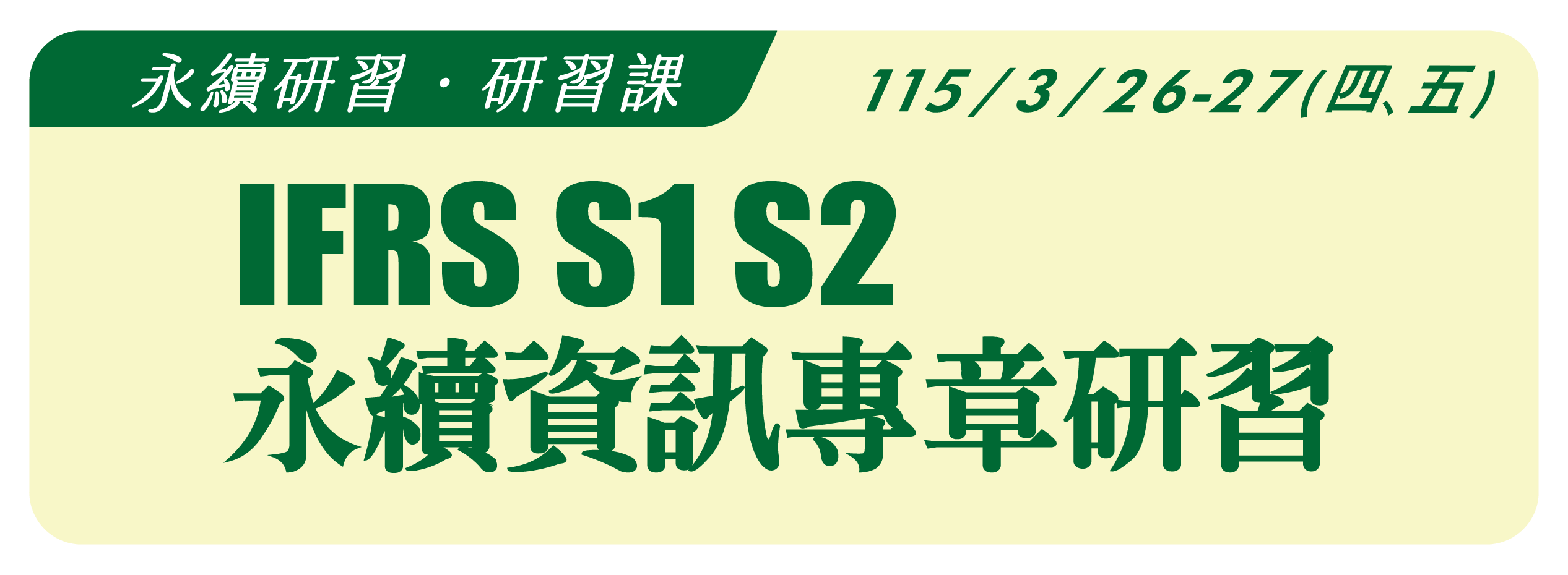 【永續研習】115.3.26-27 (四、五) IFRS S1 S2 永續資訊專章研習