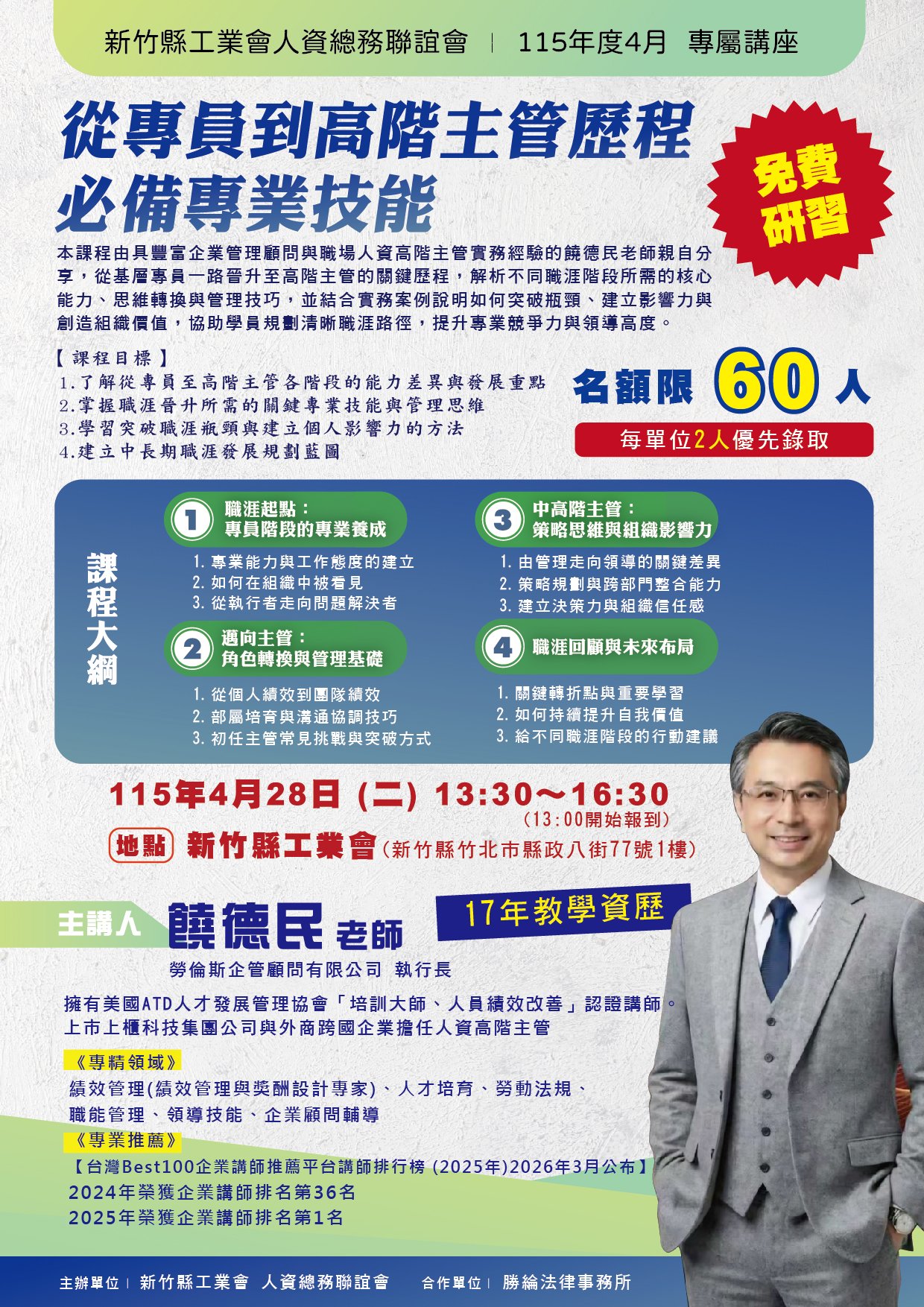 【免費講座】115.4.28 (二) 從專員到高階主管歷程必備專業技能