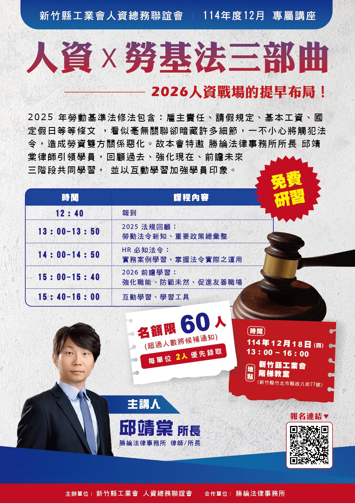 【免費講座】114/12/18 (四) 人資 X 勞基法三部曲