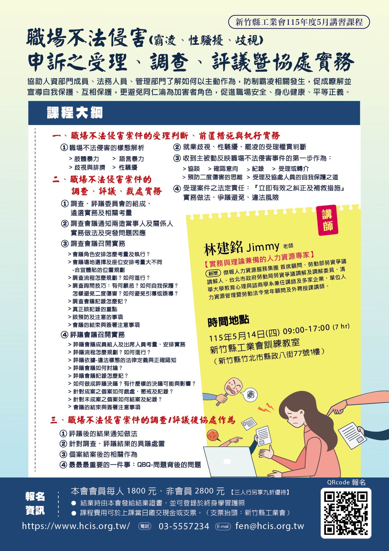 【人資相關】115.5.14 (四) 職場不法侵害、霸凌、歧視與性騷擾案例分享與處理方案